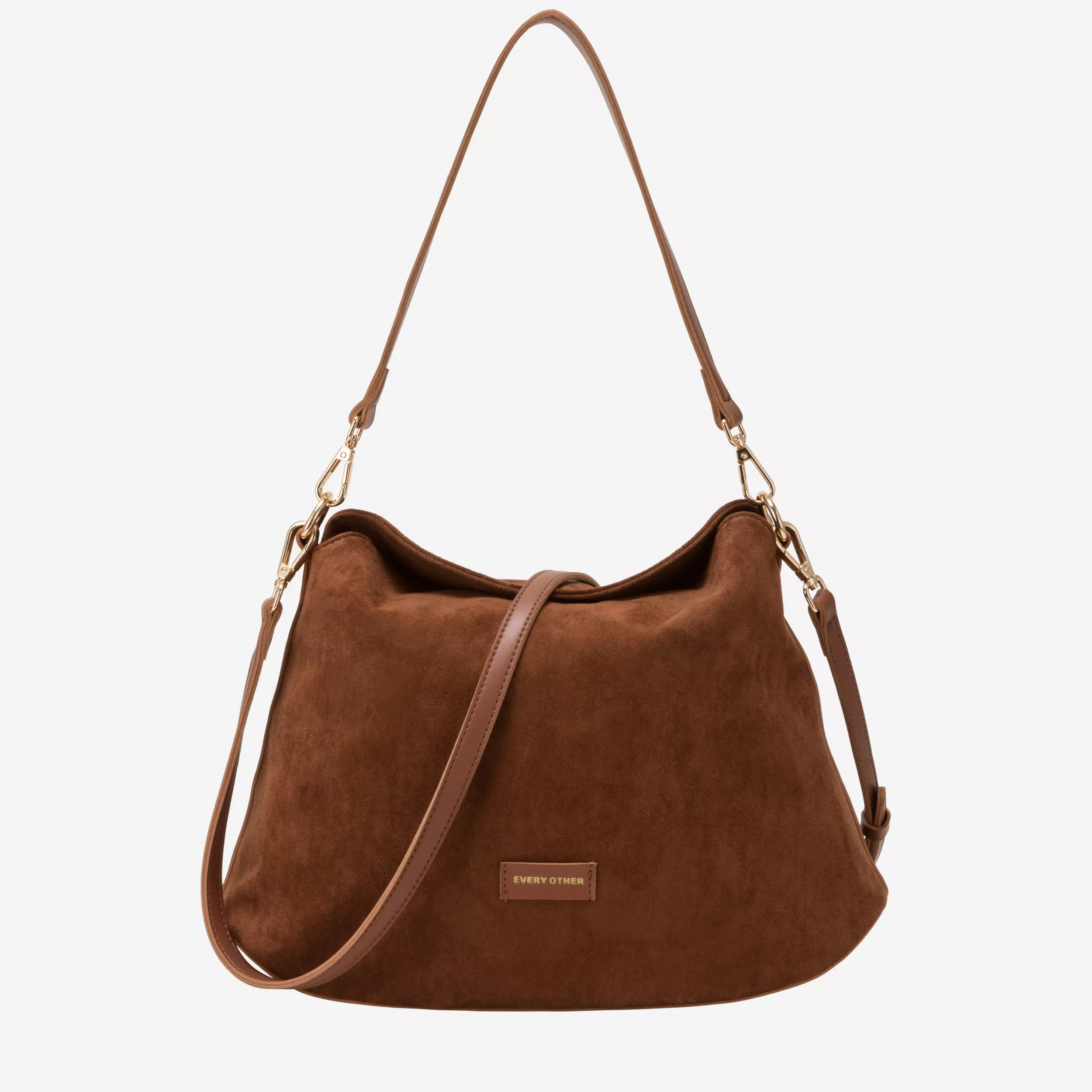 • This shoulder bag is crafted from soft suede PU fabric with PU detailing for a relaxed yet refined look. Finished with gold-tone hardware for a hint of luxe, plus a flap-over closure and interior pockets to keep all your essentials neatly in place.
