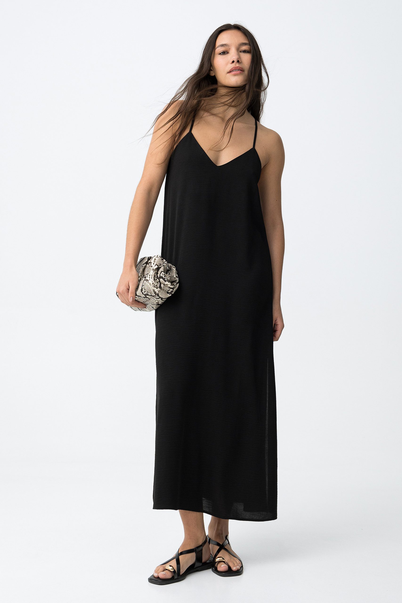 Long black dress with straps