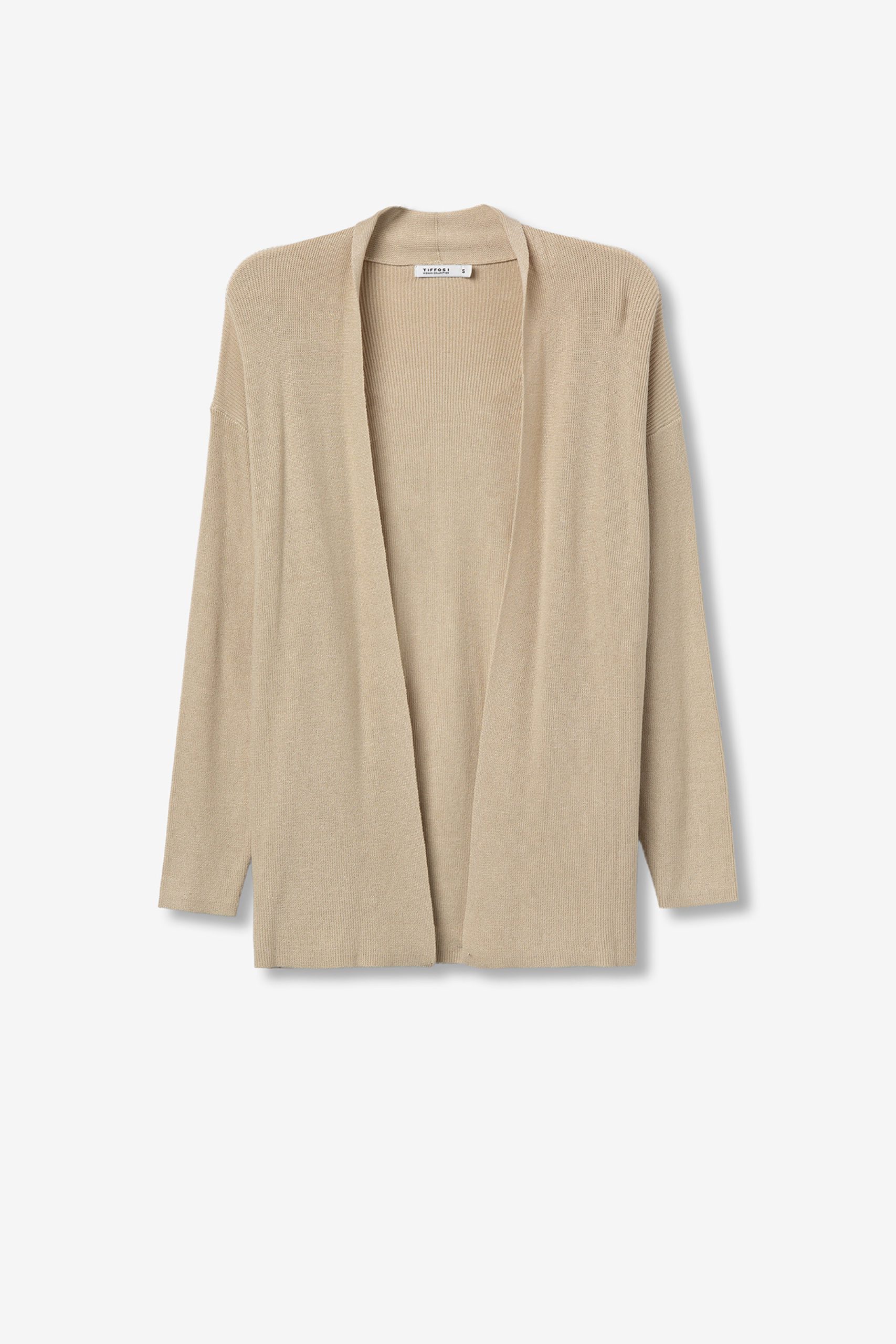 - Fine knit cardigan with long sleeves.