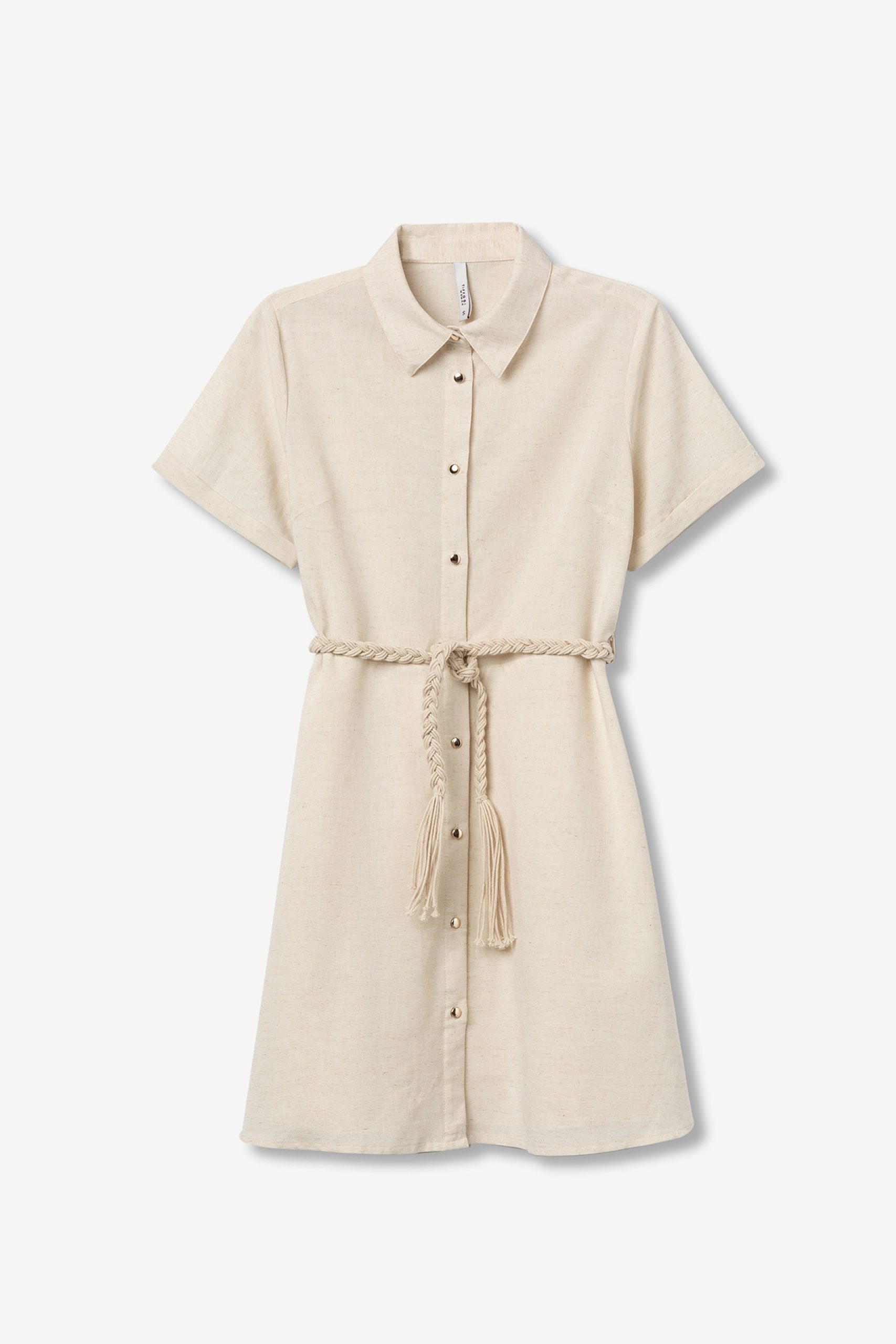 Μπεζ φόρεμα με πλεκτή ζώνη