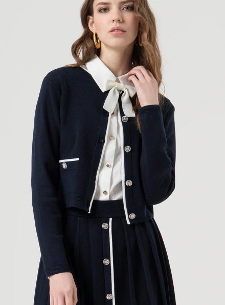 - Πλεκτό σε φαρδυά γραμμή με πλεξούδες και λαμπερές πέτρες.