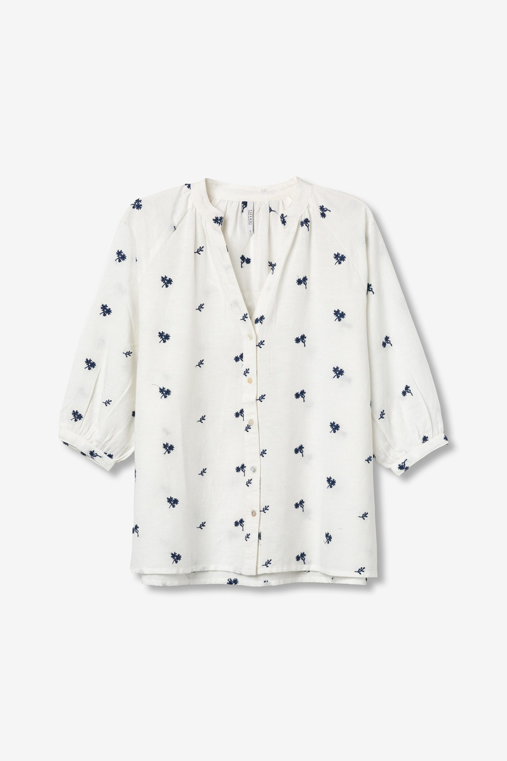- Με φαρδύ κόψιμο, κουμπιά μπροστά και διάσπαρτα σκούρα μπλε κεντήματα, έχει μια casual και μινιμαλιστική ατμόσφαιρα.