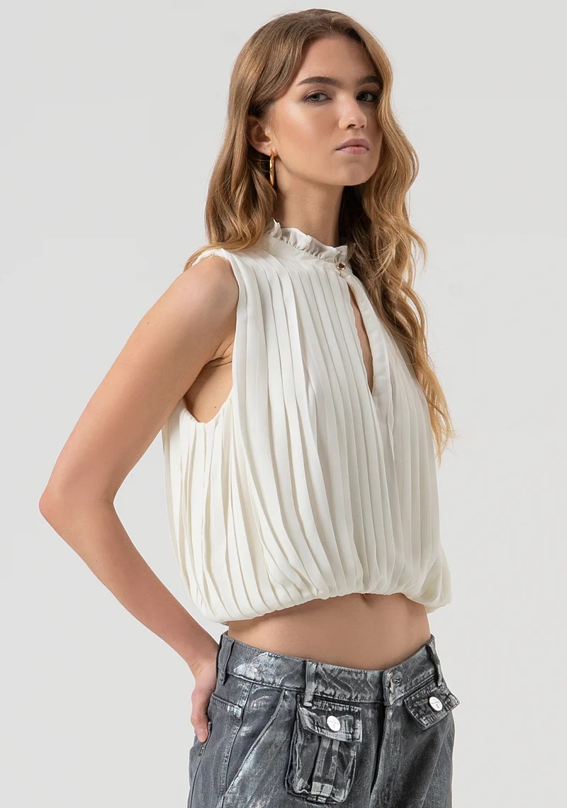 - Κοντό τοπ με στρογγυλή λαιμόκοψη και άνοιγμα με δάκρυ
