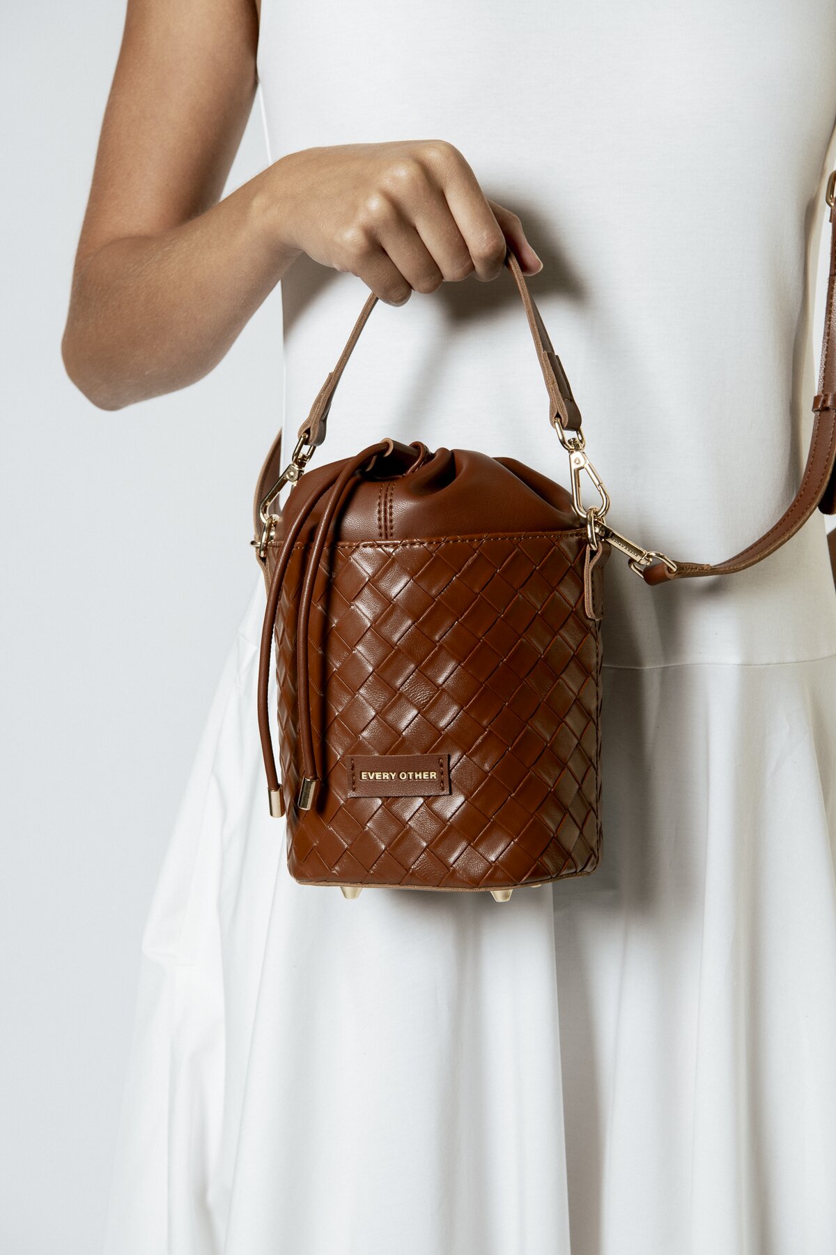 - Η απαραίτητη καλοκαιρινή τσάντα-bucket, ο αγαπημένος σας σύντροφος για τις μέρες στην παραλία, τα πικνίκ και τις βόλτες κάτω από τον ήλιο. Κατασκευασμένη με διαχρονικό εξωτερικό ύφασμα PU με ύφανση καλαθιού για επιπλέον υφή σε κάθε καλοκαιρινό ντύσιμο.